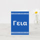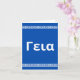 Greek greeting card with fun design and Greek language greeting, γεια, hello in Greek.