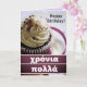 Card says "χρόνια πολλά" to wish a happy birthday.