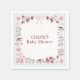This editable shower napkin coordinates with the Wildflower Bow Frame on Gingham Baby Shower invitation and features soft brushed flowers on a watercolor gingham background. The text can be edited for any message.