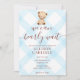 002 Cerulean Blue Teddy Bear Gingham Baby Shower Invitation