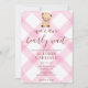 009 Fuchsia Pink Teddy Bear Gingham Baby Shower Invitation