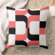 A bold geometric design made up of curved angle shapes arranged in alternating directions with alternating colors.