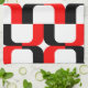 A bold geometric design made up of curved angle shapes in arranged in alternating directions with alternating colors.