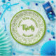 This design is a green and white random number pattern with milestone number 30 repeated in varied sizes and angles. Your text is printed on the white circle in the center. The design is trimmed with white and green rings around the rim.
