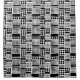 An original hand drawn abstract pattern design made up of arrangements of dots in a variety of sizes interspersed with solid rectangles and lines.