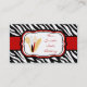 These 100 2x3.5 Sized Crimson Red Zebra Print Pattern Bakery Chef Cooking Cook Restaurant business card is perfect for any business and is completely customizable. It is printed on smooth, matte 88lb white card stock with full color two sided printing! 100 cards per QTY of 1.