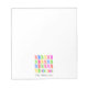 This cheerful notepad commemorates the exciting milestone of 100 days of school! The design consists of colorful tally marks and a place to add your own text, such as your classroom's teacher's name. It makes a great addition to a classroom party or celebration of the 100th day.