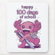 Cute design featuring an axolotl wearing a backpack and holding a big pen with the quote "Happy 100 days of school". Happy 100th day of school or kindergarten.
