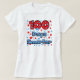 Red and blue text with 100 stars design on 100 Days Smarter T-shirts, mugs, buttons, bags, cards, stickers, magnets, keychains, and other 100 days of school apparel and gifts.