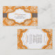 These 100 2x3.5 Sized beautiful Orange Damask Lace Print Fabric Leaves Floral Foliage Nature Nail Technician business card is perfect for any business and is completely customizable. It is printed on smooth, matte 88lb white card stock with full color two sided printing! 100 cards per QTY of 1.