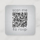 Simplify RSVP responses and provide any important details with chic modern QR code square enclosure cards. All text is simple to customize, including wording that reads "scan me to rsvp". To make your own QR code using the generator, simply type the website URL into the template. By scanning the card with their phones, guests are sent directly to the wedding website to reply to the invitation. An online rsvp process reduces the chance that cards will be lost in the mail. It's also more versatile, in that you can ask for more detailed information, such as meal choices, food allergies, and song requests. All response information can be personalized or deleted. The silver and black design features a faux foil background and elegant modern typography. Please note that silver is printed color, not metallic foil. This card is a stylish way of asking wedding guests to kindly reply to your upcoming special day celebration.