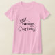 The material is a great quality that is hard to find with most tee shirts. Fabric was not see-through or thin at all, but was also very soft and comfortable. The shirt description states that it runs a little small, so I sized up one size for a perfect fit! I would definitely buy this type of tee shirt again because I love the fit and high quality fabric that I cannot find anywhere else. The printing was perfect and just as pictured. Loved the cute quote and really enjoy the tee in both the quality and design. I love quirky typography designs and funny quotes and I am extremely pleased with the overall quality and value I get at Zazzle!