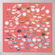 Illustration of 100 pieces of Vintage Pyrex done by Beth Kyle. Salmon/Red hued background.