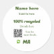 100% recycled add Q R code here business name Classic Round Sticker