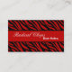 These 100 2x3.5 Sized Crimson Red Black Zebra Print Pattern business card is perfect for any business and is completely customizable. It is printed on smooth, matte 88lb white card stock with full color two sided printing! 100 cards per QTY of 1.