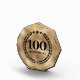 Gold foil style 100th anniversary acrylic award plaque with a business logo. Commemorative design with a laurel branch and stars. The logo can be changed for text by clicking the button to edit the design.