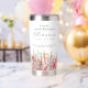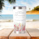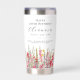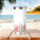 Perfect birthday gift for an August birthday. Pink gladiolus is the birth flower for that month. It forms a pretty watercolor bottom border on this floral personalized insulated tumbler. The birthday guest of honor's name, age and birthdate are placed above it using elegant calligraphy and typography. All text is editable.