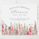 Perfect table decor for an August birthday party. Pink gladiolus is the birth flower for that month. It forms a pretty watercolor bottom border on this floral personalized wine bottle label. The birthday guest of honor's name, age and birthdate are placed above it using elegant calligraphy and typography. All text is editable.