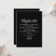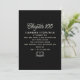 Elegant black and white invitation features white pearl script and a tiny pearl book on a black background. Chapter 100 gives it a trendy vibe and the book at the bottom adds whimsical touch. Perfect for a reader or book lover!