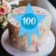 Star shaped, acrylic cake topper for a 100th birthday milestone celebration. Cake topper colors are blue with white numbers. You may edit birthday age as desired.