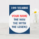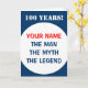 Funny 100th Birthday card for men | The man The myth The legend greeting card. Humorous card idea for dad, uncle, grandpa, brother etc. Personalizable wishes text like Happy Birthday. One hundred year old.