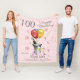 A stylish milestone Happy birthday 100th age blanket. Features a sparkling wine bucket glasses and balloons and confetti all on a pale pink background with silver colored text. Perfect as a gift to celebrate a 100th birthday, something that they can cherish and snuggle up with, Can be customize by amending the titles then personalize by adding the name and date to make this a truly unique and personal gift.Background color can be changed if needed, just click on the personalize further button.
