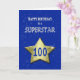 100th birthday card for a superstar. A big gold star carrying the age floats in the heavens. In the background stars twinkle. A great birthday card for someone very special.