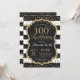 100th Birthday Invitation. Black and Gold Glitter Invitation