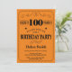 100th Birthday Invitation Black and Orange