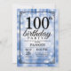 100th Birthday Invitation Blue Glitter