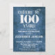 100th Birthday Invitation Blue Linen Rustic Cheers