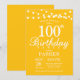 100th Birthday Invitation with String Lights.Yellow Background. Men or Women Birthday. 13th 15th 16th 18th 20th 21st 30th 40th 50th 60th 70th 80th 90th 100th, Any age. For further customization, please click the "Customize it" button and use our design tool to modify this template.
