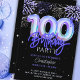 100th Birthday Mens Blue Fireworks Foil Balloon Invitation