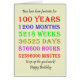 100th birthday card counting down the years, days, months, hours, and minutes. A card to give pause for thought! Leap years have been taken into account!