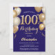 100th Birthday Navy Blue and Gold Balloon Confetti Invitation