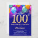 100th Birthday Navy Blue and Gold Colorful Balloon Invitation