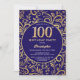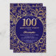 100th Birthday Navy Blue and Gold Floral Pattern Invitation