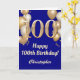 100th Birthday Navy Blue Gold Balloons Confetti Card