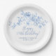 100th Birthday Party Blue Rose Floral Custom Paper Plates