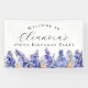 Elegant summer watercolor blue larkspur flowers create a beautiful floral border at the bottom of this birthday party welcome banner, larkspur or delphinium flowers are the July birth flower. A trendy font combination gives it a modern aesthetic. All of the text is editable.
