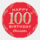 100th Birthday Party Red and Gold Glitter Frame Classic Round Sticker