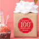 100th Birthday Party Red and Gold Glitter Frame Sticker. For further customization, please click the "Customize it" button and use our design tool to modify this template.