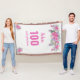 Elegant design for a 100th birthday party with a pink "100 and fabulous" and a scripted name embellished by a feminine watercolor flowers on a white background. Customize age, text, name and background color.