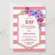 100th Birthday Pink Striped Lavender Floral Party Invitation