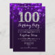 100th Birthday - Purple Silver Invitation