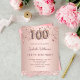 A modern, stylish and glamorous invitation for a 100th birthday party. A faux rose gold metallic looking background with rose gold and pink dripping stars and a glitter band. The name is written with a modern dark rose gold colored hand lettered style script. Personalize and add your party details. Number 100 is written with a balloon style font, script.