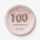 100th birthday rose gold glitter pink balloon chic paper plates
