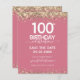Elegant Faux gold glitter with shimmering confetti highlights on the top and bottom border. All text is adjustable and easy to change for your own party needs. Great elegant 100th birthday template design.