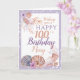 A beautiful 100th birthday card with nautical beach seashells and coral, strings of lights and a pale purple border. The perfect card for those celebrating a milestone birthday. Customize by changing the number then personalize with a name and message which currently reads "Congratulations on this amazing milestone. May this day be filled with sunshine and smiles, laughter and love. Have a very Happy 100th Birthday.! A great birthday card for any age.