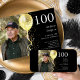 100th | Black & Gold Glitter Photo Birthday Invitation